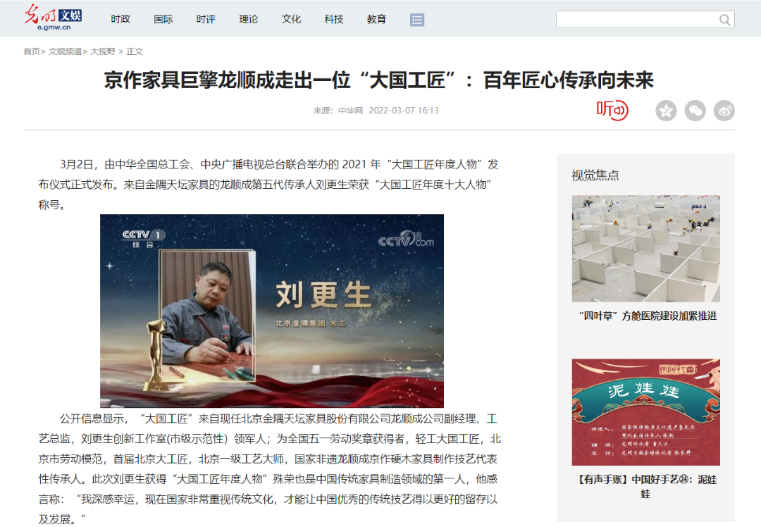一件冬奧家具的價值有多高?榮獲大國工匠的劉更生領(lǐng)銜制作,展現(xiàn)京作最高技藝,作為北京2022年冬奧會和官方生活家居供應商,引來新浪、網(wǎng)易、光明日報平臺等權(quán)威媒體爭相報道。