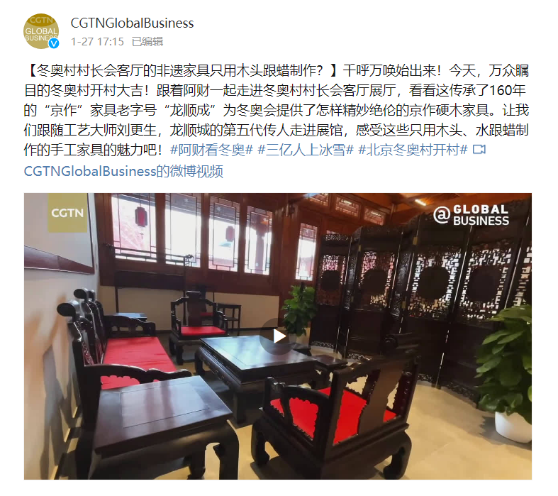 從APEC會議的托泥圈椅再到北京冬奧會場館家具,龍順成一直代表京作家具向世界展示中國文化自信。