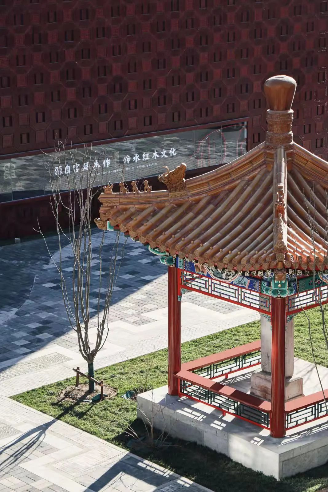 京作非遺博物館作為北京市南中軸線申遺的起點(diǎn),是金隅集團(tuán)服務(wù)首都“雙奧之城”建設(shè)、打造“博物館之城”、為首都“四個(gè)中心”建設(shè)貢獻(xiàn)力量的具體體現(xiàn)。博物館汲取宮廷“國(guó)寶重匣”的裝飾風(fēng)格,凸顯龍順成“源自宮廷”的文化淵源,陳列多件明清時(shí)期的大國(guó)重器,講述京作家具發(fā)展史。