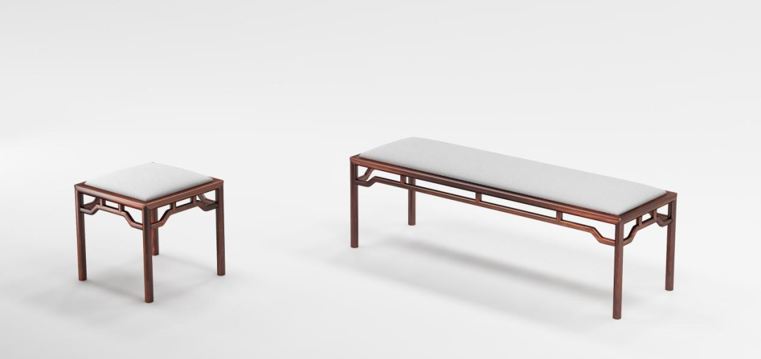 下座面邊雙劈料圓腿間設(shè)直牙板