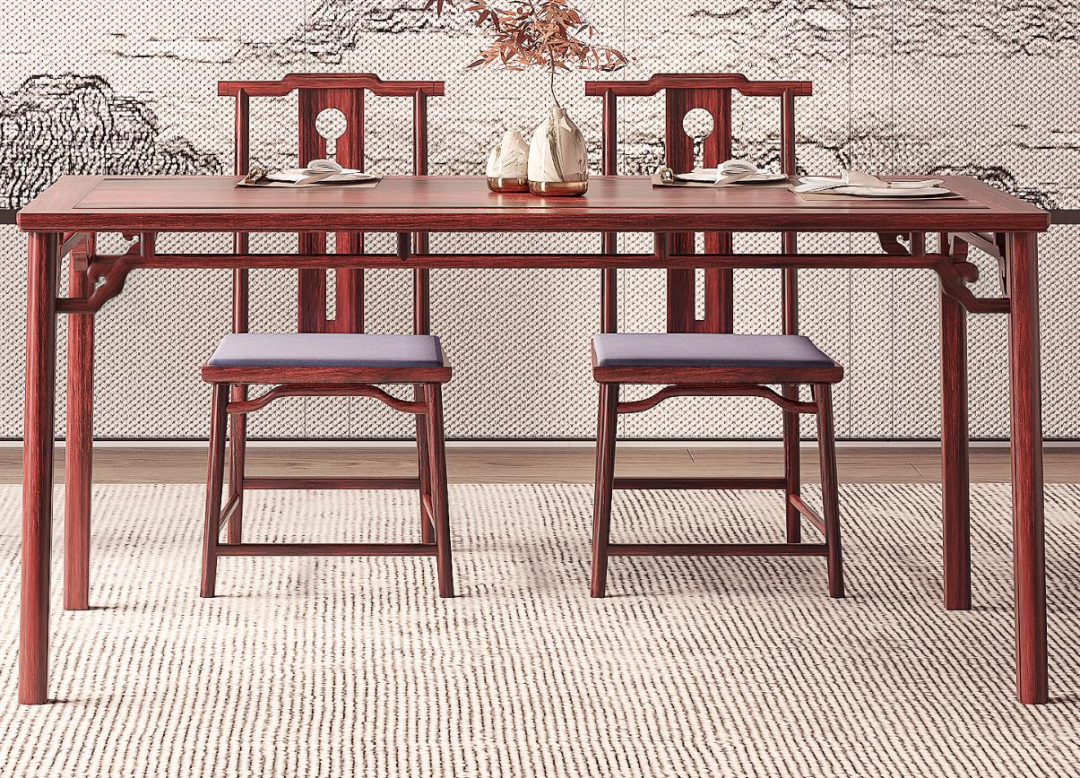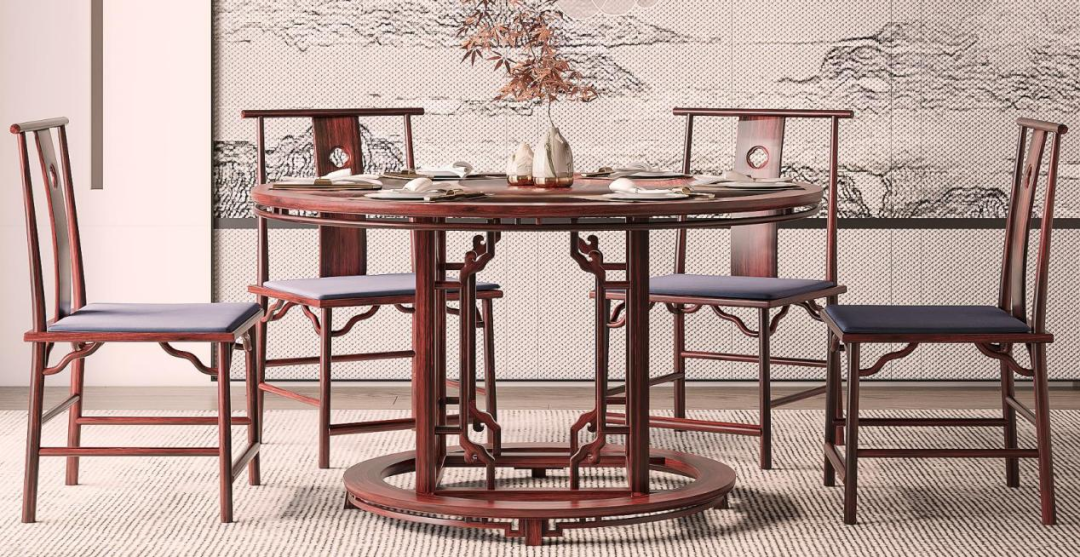 大果紫檀材質(zhì):如意餐桌+如意餐椅*4,
