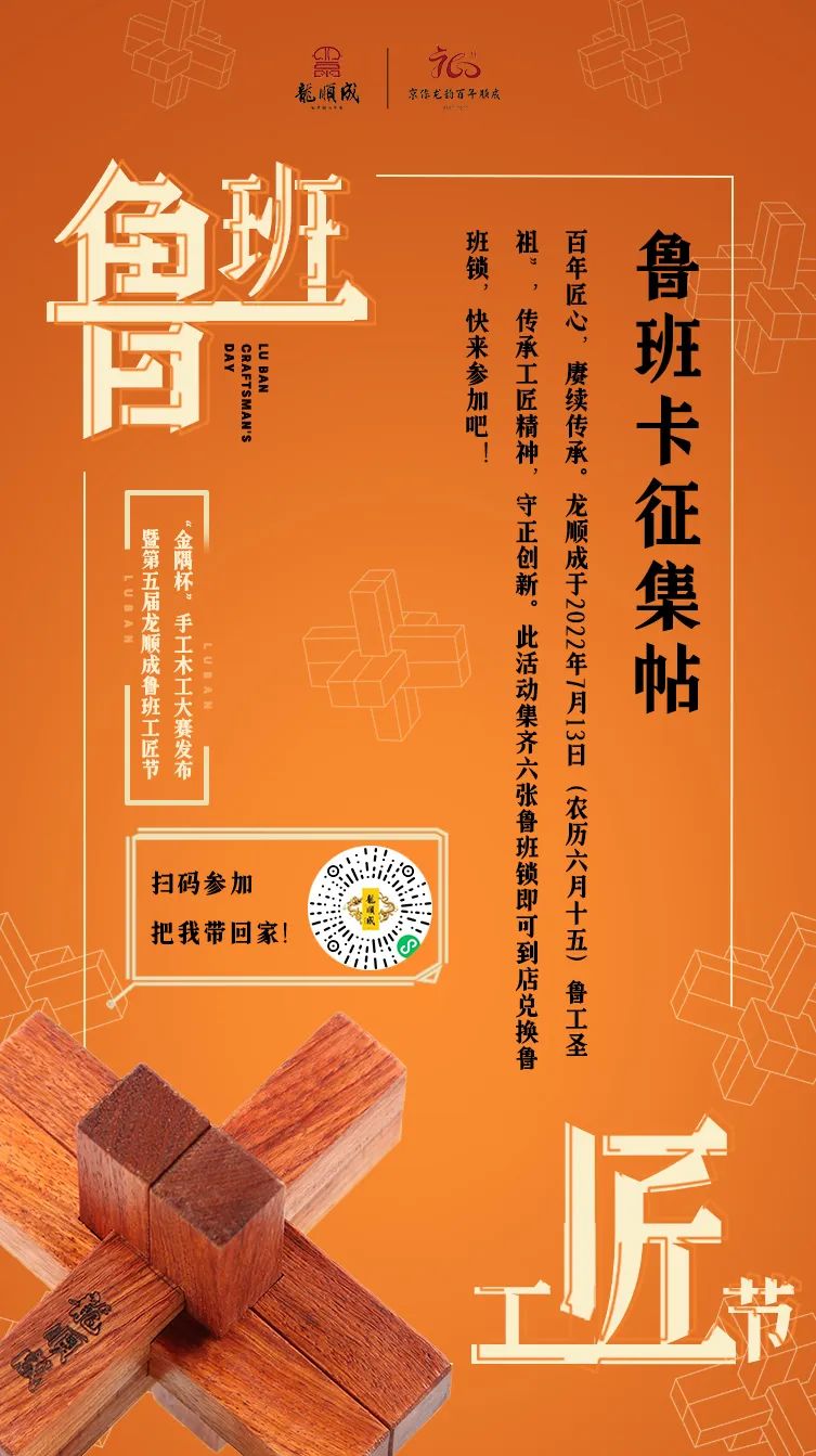 2022年7月13日,百年老字號龍順成擬于金隅龍順成文化創(chuàng)意產(chǎn)業(yè)園內(nèi)舉辦“‘金隅杯’手工木工大賽發(fā)布暨第五屆龍順成魯班工匠節(jié)”活動,點擊下方圖片參與活動可得驚喜福利。文末留言,說出您身邊與“工具”有關(guān)的故事,即有福利大獎送到家~